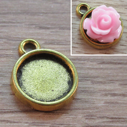 Zetting, ook wel setting of cabochonhouder genoemd, voor ronde plakstenen. Het zijn elementen met een opstaand randje, waar de cabochon of plaksteen mooi tussen valt. Zo creëer je een leuk hangertje naar eigen smaak, want de keuze van de plaksteen is aan jou.