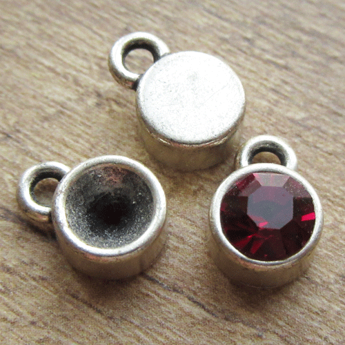 Dit onderdeeltje heeft een passende uitsparing waar een puntsteentje SS29 in past. Met een oogje, zodat het eenvoudig aan een ander onderdeel geplaatst kan worden.