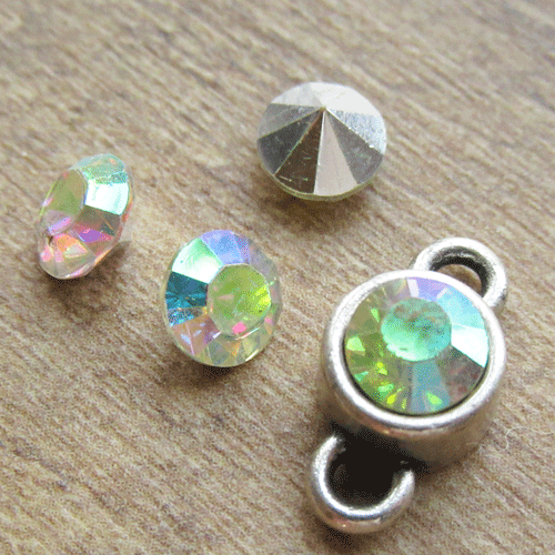 Mooi punststeentje met facetten. Crystal met AB glans.• Maat: 6,2 mm.• Per stuk.