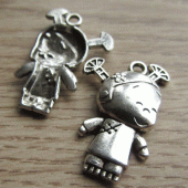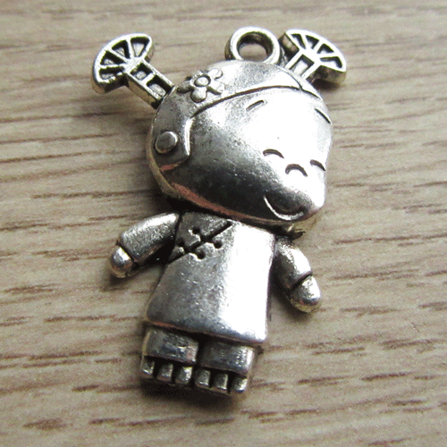 Leuke bedel in de vorm van een meisjes met staartjes en kimono. De bedel is hol.