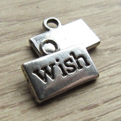 Rechthoekig bedeltje met de tekst Wish.