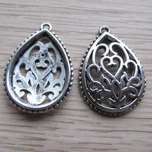 Druppelvormige bedel. Open. Hol aan de achterzijde.