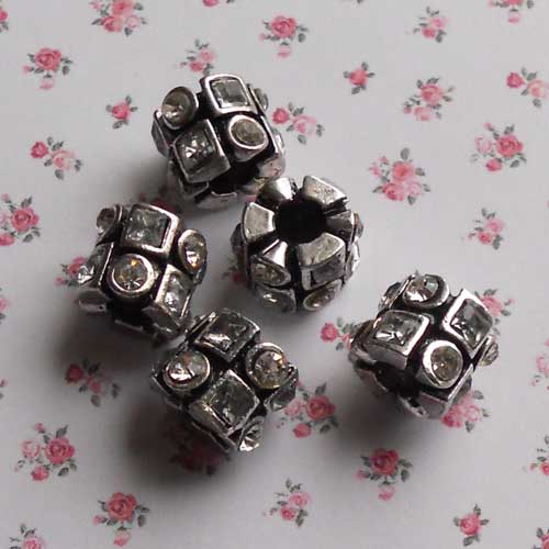 Mooie kraal met roze strasstenen. Geschikt voor het dik elastiek, of bijvoorbeeld op een dubbele draad imitatie leerveter, maar ook voor de bekende armbandsystemen.