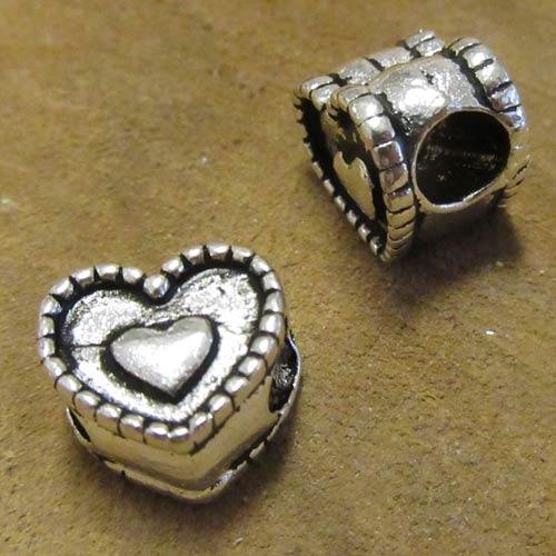 Metalen hartje kraal met groot gat.