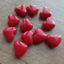 Ook in rood is er een brede keus aan kunststof kralen. Transparant en opaque, mat en glanzend. Het kan allemaal.
