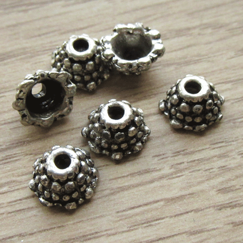Bewerkt kralenkapje met bobbeltjes erop.In het voorbeeld zijn de kapjes met 12 mm kralen gebruikt.