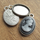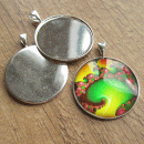 Bedels met plakvlak voor cabochon. Ook diverse platte bedels, waarop een plaksteentje kan worden gelijmd. Kijk ook eens in de rubrieken oorbellen maken en vingerringen en haarspeldjes voor nog meer mogelijkheden met plakstenen.