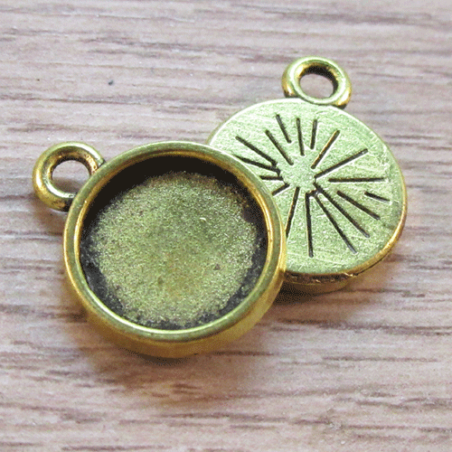 Zetting, ook wel setting of cabochonhouder genoemd, voor ronde plakstenen. Het zijn elementen met een opstaand randje, waar de cabochon of plaksteen mooi tussen valt. Zo creëer je een leuk hangertje naar eigen smaak, want de keuze van de plaksteen is aan jou.