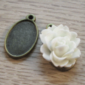 Kleine zetting, geschikt voor de kleine ovaal gevormde cabochons zoals de lotusbloem en de cabochon met bloemreliÌÇf. Deze passen niet precies in de zetting, maar met voldoende lijm lukt het prima.
