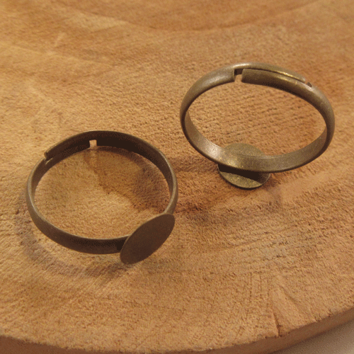 • Verstelbaar door de achterzijde te buigen, zie foto.• Breedte van de band is 3 mm.• Plakvlak voor cabochon van ca. 8 mm.• Nikkelvrij, bronskleurig.• Prijs is per stuk.