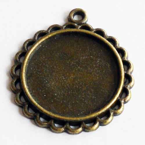 Zetting rond brons voor 20 mmDeze bronskleurige cabochonhouder heeft een rand met openingen. Gewoon voor de sier, maar ook te gebruiken als bevestigingsoog om iets aan te doen. In de zetting, ook wel setting genoemd, kun je één van onze ronde camee's plakken, of een bloemcabochon.