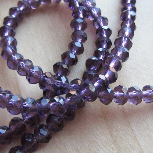 Diep paarse facet rondellen, streng van ca. 150 kralen.