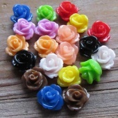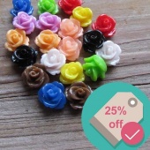 Mix plakstenen in de vorm van roosjes 9 mm met een vlakke achterkant (flatback). In kleurenmix met 10 verschillende kleuren. Van elke kleur zitten er 2 in de mix, dat is prettig voor het maken van oorbellen.