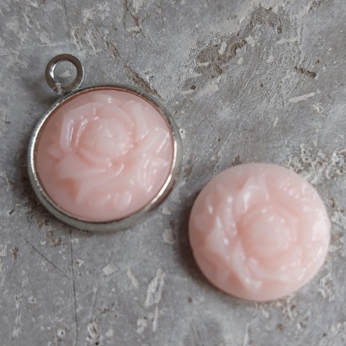 Camee rond peach kleinIn reliëf een roos op de steen. Deze kleine maat is leuk te gebruiken in bijvoorbeeld armband of oorbellen.