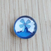 Transparante cabochon van glas, met plaatje van een molen erachter.