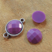 Eenvoudige kunststof cabochon, plaksteen met facettten. Past goed in deze zetting.