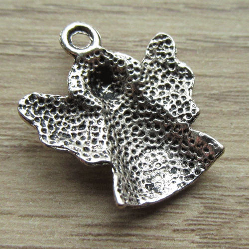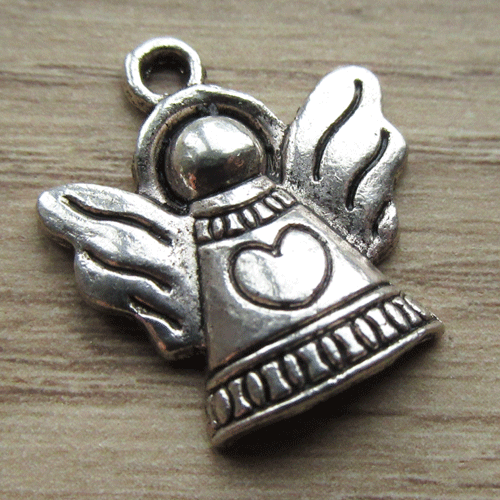Metalen bedeltje engel, figuurtje met hartje op de borst, vleugels en een aureooltje.