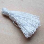 Kwastje witKwastje zonder eindkap om sieraden mee op te vrolijken. Denk aan ibiza sieraden. Door een buigringetje door de bovenkant van het kwastje te doen kun je het als een bedeltje gebruiken.