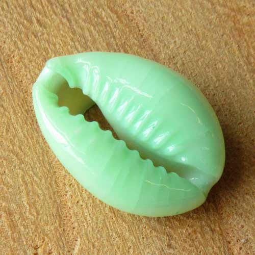 Schelpje zachtgroenKauri schelpje in groen met open achterkant. Onmisbaar bij het maken van zomerse ibiza stijl sieraden.