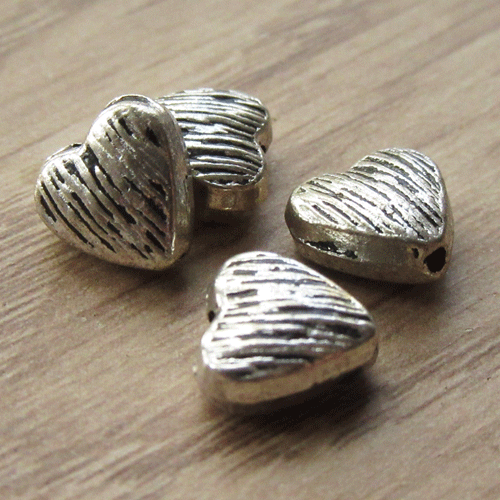 Metalen kraal in de vorm van een lief hartje. Er zit een klein reliëfstreepje op. De maat is vrij neutraal, het kraaltje kan gecombineerd worden met kralen van 4 tot 12 mm. Leuk in sieraden met het thema liefde.