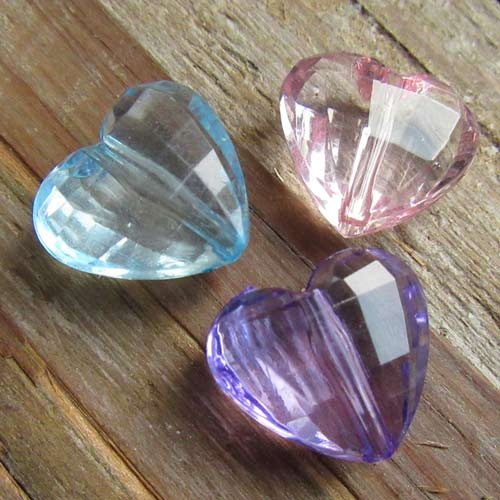 Kunststof kraal hart met mooie facetten. De kraal is doorzichtig, transparant. Mooi als blikvanger in sieraden, denk bijvoorbeeld aan een sleutelhanger, maar ook een leuk idee om te gebruiken in decoratieve slingers.