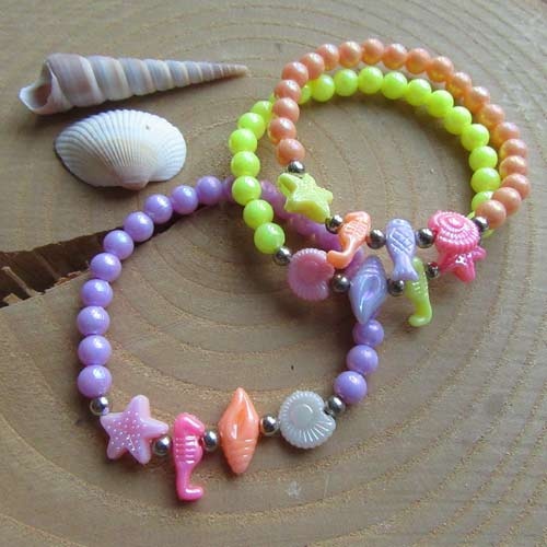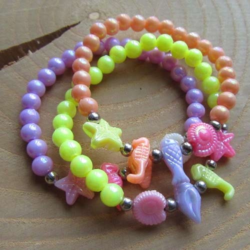 Leuk zomers pakket van 8 armbandjes in frisse kleuren, eenvoudig zelf te maken met de bijgeleverde uitleg.