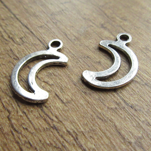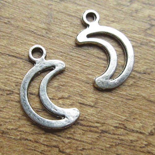 Metalen hanger maantjeDit is een simpel vormgegeven hangertje, dat eigenlijk alleen de contouren van een wassende maan laat zien. Het is glad en aan beide zijden hetzelfde.