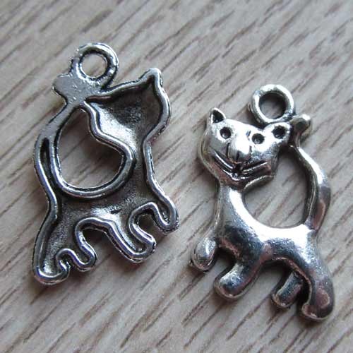 Bedeltje poesjeLief, eenvoudig bedeltje in de vorm van een poesje. Het hangertje is hol aan de achterzijde.