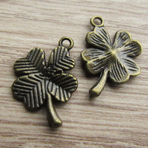 Bedeltje brons klavertje vierBedeltje geluk vintage steampunk