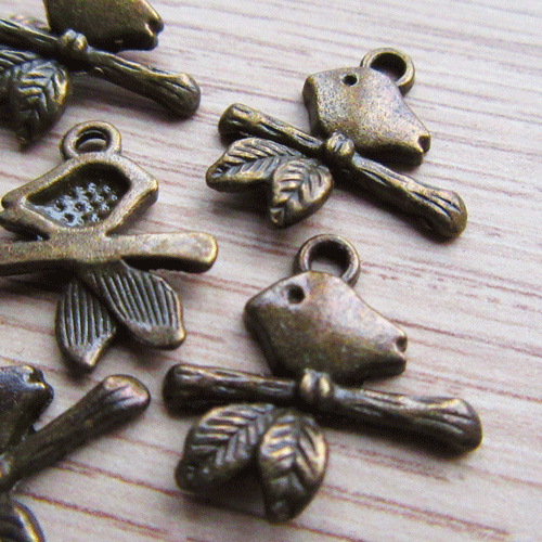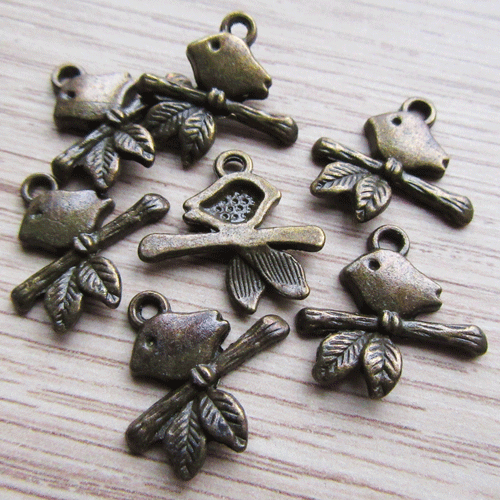 Bedeltje vogeltje op takEen lief bedeltje van een een vogeltje op een takje. De achterzijde van het hangertje is hol.