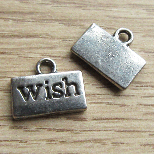 Rechthoekig bedeltje met de tekst Wish.