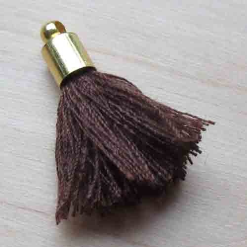 Klein kwastje bruinDit wat kleinere kwastje heeft een goudkleurige eindkap en is dus te combineren met andere goudkleurige materialen.
