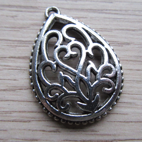 Druppelvormige bedel. Open. Hol aan de achterzijde.