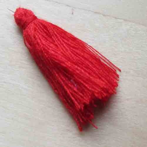 Kwastje roodKwastje zonder eindkap om sieraden mee op te vrolijken. Denk aan ibiza sieraden. Door een buigringetje door de bovenkant van het kwastje te doen kun je het als een bedeltje gebruiken.