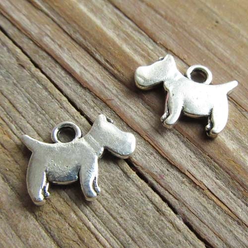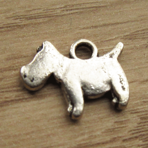 Lief plat hondenbedeltje. Eenvoudige vormgeving, waardoor juist de vorm van het hondje geaccentueerd wordt.