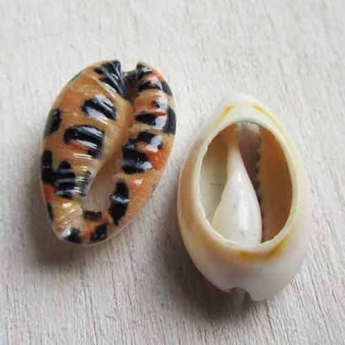 Schelpbedeltje passend bij zomerse sieraden. Je kan er koord doorheen halen en zo als tussenzetsel gebruiken.