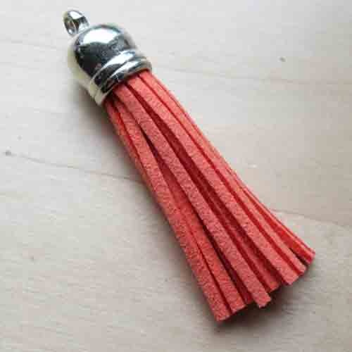 Kwastje of tassel oranje/koraalroodSieraadonderdeel, dat kleur en fleur geeft aan jouw sieraad projecten. Deze kan als hanger gebruikt worden aan een ketting, maar is ook leuk aan een tashanger.