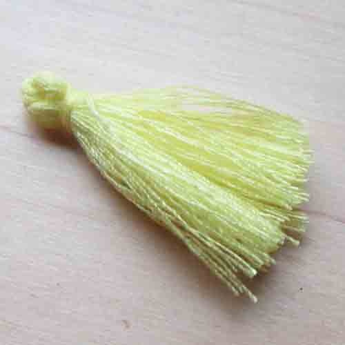 Kwastje geelEenvoudig en voordelig flosje, waarbij je alleen nog een ringetje moet bevestigen aan de bovenkant. Dan kan je het aan je sieraad of decoratie vastmaken.