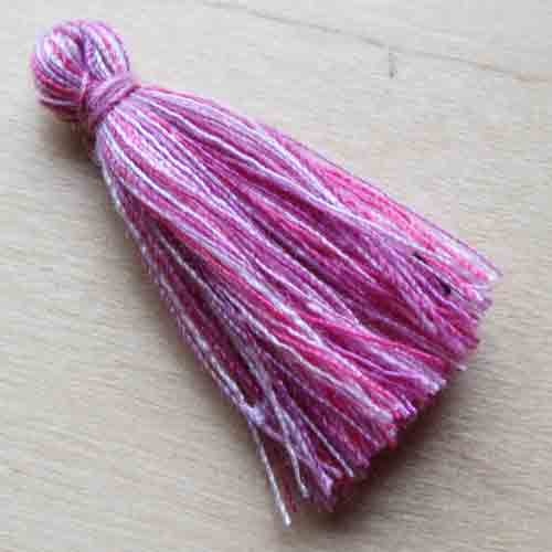Kwastje met draadjes in paarstinten.