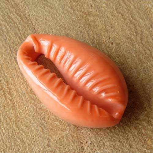 Schelpje oranjeKauri schelpje in oranje met open achterkant. Onmisbaar bij het maken van zomerse ibiza stijl sieraden.