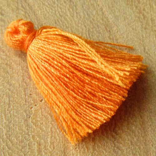 Kwastje oranje 2 cmKort kwastje om je zomerse sieraden mee op te fleuren. Met een buigringetje door het bovenste deel van het kwastje kun je het orver aan hangen.