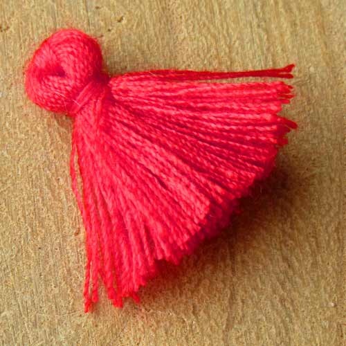 Kwastje rood 2 cmKort kwastje om je zomerse sieraden mee op te fleuren. Met een buigringetje door het bovenste deel van het kwastje kun je het orver aan hangen.