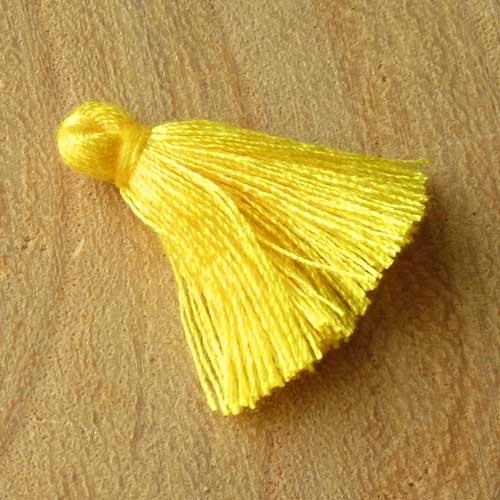 Kwastje geel 2 cmKort kwastje om je zomerse sieraden mee op te fleuren. Met een buigringetje door het bovenste deel van het kwastje kun je het orver aan hangen.