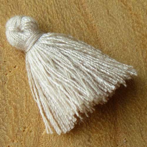 Kwastje beige 2 cmKort kwastje om je zomerse sieraden mee op te fleuren. Met een buigringetje door het bovenste deel van het kwastje kun je het orver aan hangen.