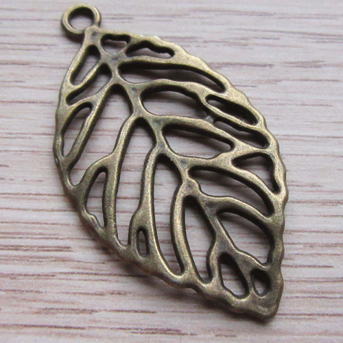 Metalen hanger blaadjeMooie hanger, helemaal open, waarin het blad vorm krijgt door de nerven. Op de foto zie je de voor- en achterzijde.