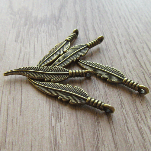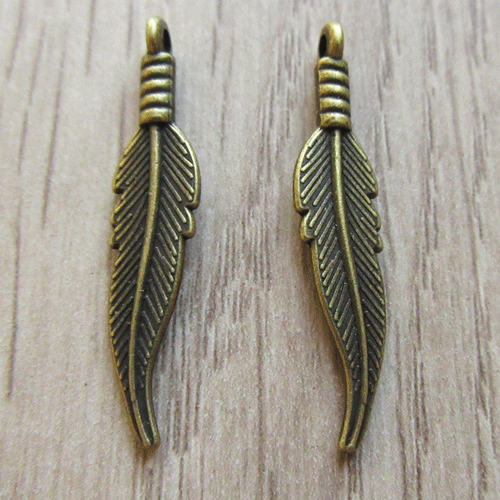 Bedeltje veertje bronskleurigMetalen hangertje dat een veertje verbeeldt. Beide kanten zijn mooi gedetailleer afgewerkt, zie eerste foto.