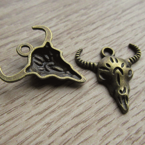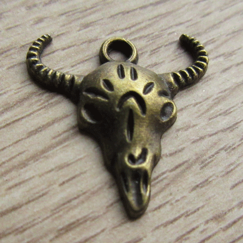 Trendy metalen bedeltje of hangertje buffelkop. Om een stoer en eigentijds accent aan je sieraden te geven. Leuk om te combineren met een buffelkop leerhanger.