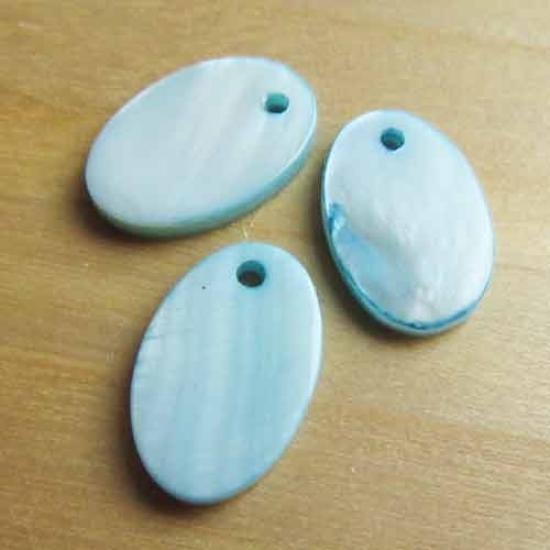 Mooi bedeltje met parelmoerglans in aquablauw.