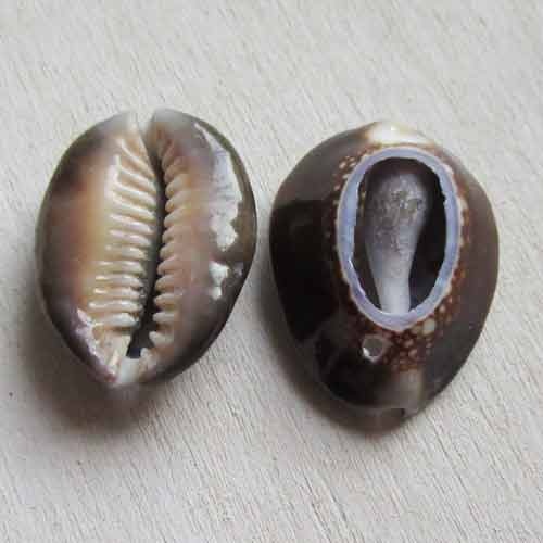 Dit kauri schelpje is een stuk groter dan het andere schelpje in ons assortiment. Er zit een gaatje in geboord, zodat het gebruikt kan worden als hangertje.