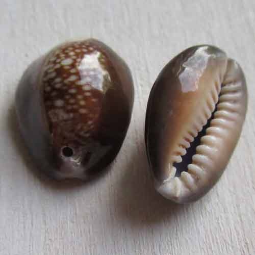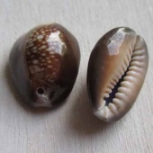 Dit kauri schelpje is een stuk groter dan het andere schelpje in ons assortiment. Er zit een gaatje in geboord, zodat het gebruikt kan worden als hangertje.